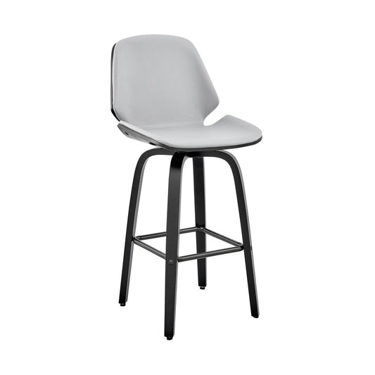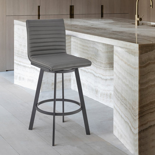 26" Gray And Black Faux Leather And Iron Swivel Counter Height Bar Chair
