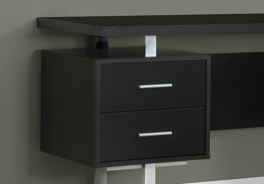 24" Dark Brown and Silver Computer Desk With Two Drawers