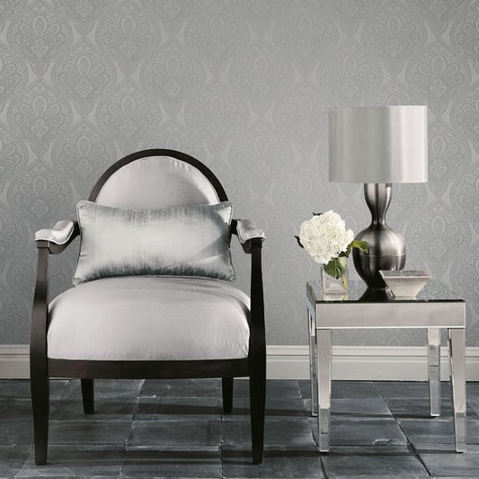Galerie Wallcoverings Emporium Mehndi Damask Galerie Wallcoverings Silver Grey - DWP0247-02