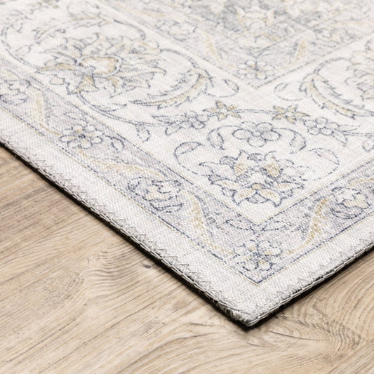 5' X 7' Blue And Grey Oriental Power Loom Stain Resistant Area Rug