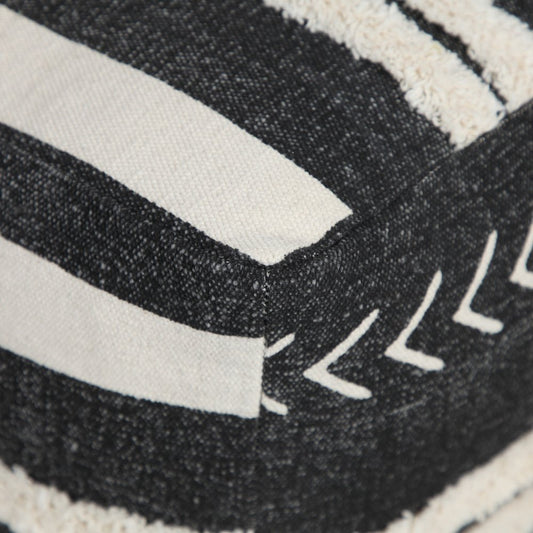 18" Black Cotton Cylinder Medallion Pouf Ottoman
