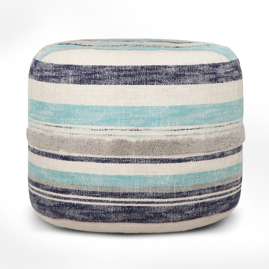 18" Blue Cotton Cylinder Striped Pouf Ottoman