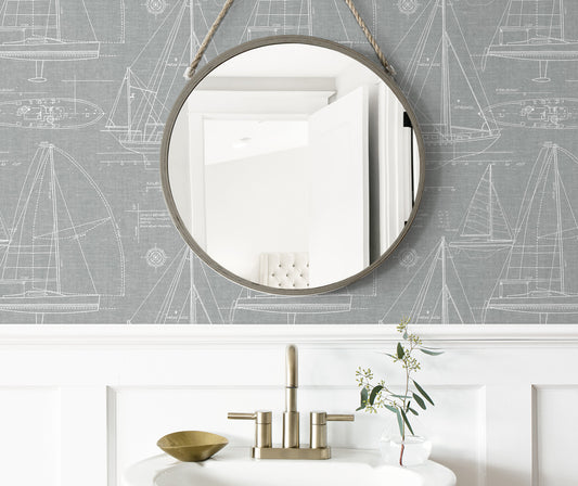 NextWall NextWall Peel & Stick Yacht Club Illustration Coastal Grey Satin - NW32908