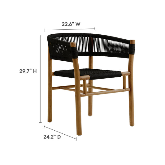 Modway - Vienna 3-Piece Outdoor Patio Teak and Rope Dining Set with Armchairs by Modway Outdoor Furniture Bar and Dining Black - EEI-6940-NAT-BLK