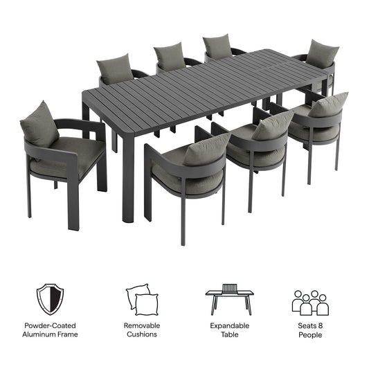 Modway - Tahoe 9-Piece Outdoor Patio Aluminum Dining Set With Extendable Table by Modway Outdoor Furniture Bar and Dining Gray - EEI-7295-GRY-GRY