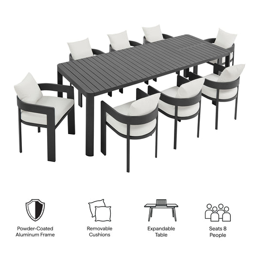 Modway - Tahoe 9-Piece Outdoor Patio Aluminum Dining Set With Extendable Table by Modway Outdoor Furniture Bar and Dining White - EEI-7295-GRY-WHI