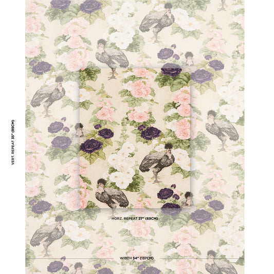 SANDERSON Hollyhocks Fabric Classic Floral Sage, Rose - DOSF226862
