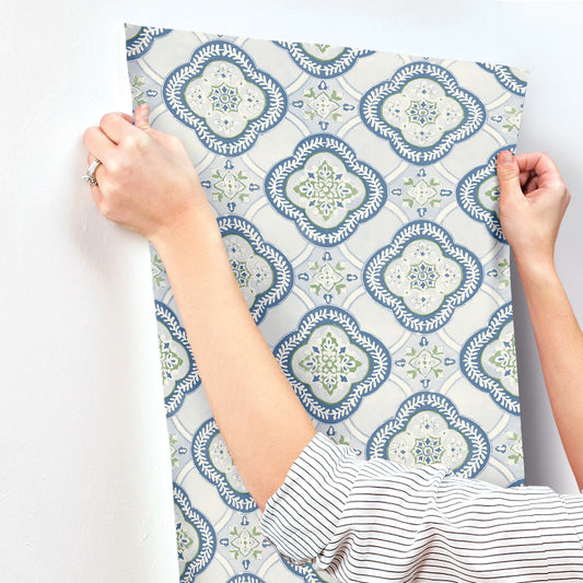 York Wallcoverings Greenhouse Garden Trellis Cobalt Wallpaper Geometrics Blues - GO8216