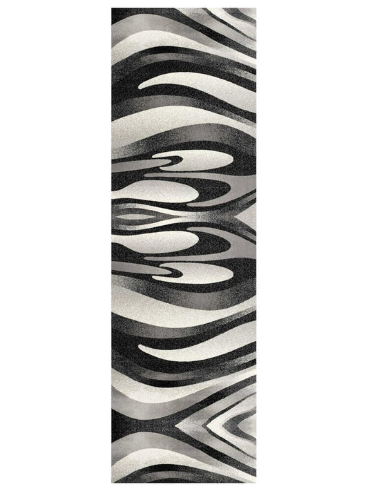 • 10' Black Gray and White Marble Power Loom Runner Rug