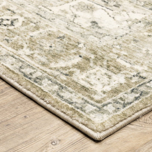 10' X 13' Beige Grey Gold And Green Geometric Power Loom Stain Resistant Area Rug