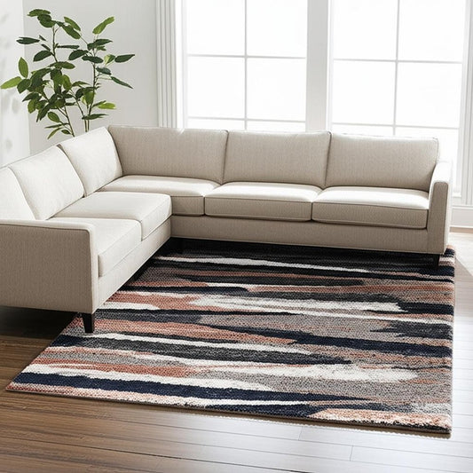 8' X 11' Gray and Black Abstract Power Loom Area Rug With Fringe