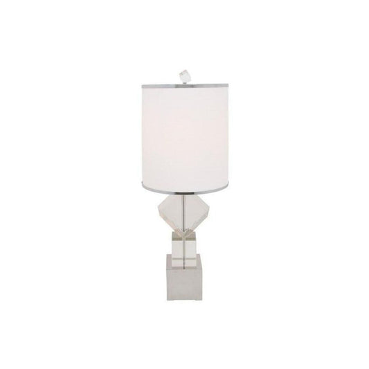 31" Clear And Silver Faux Crystal Geometric Table Lamp LED With White Drum Shade