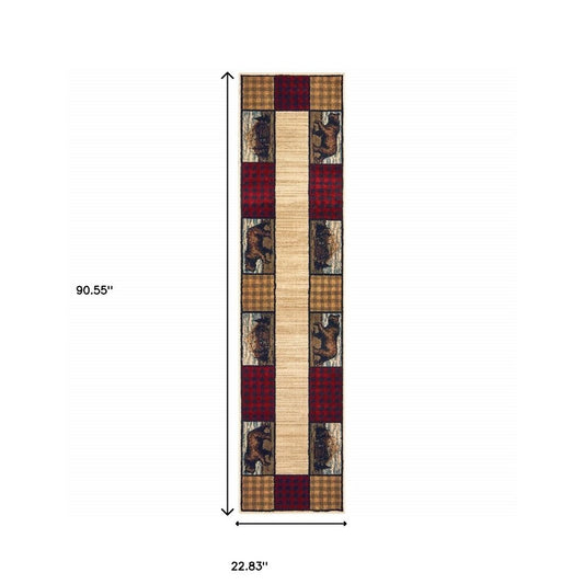 2' X 8' Ivory Southwestern Power Loom Stain Resistant Runner Rug