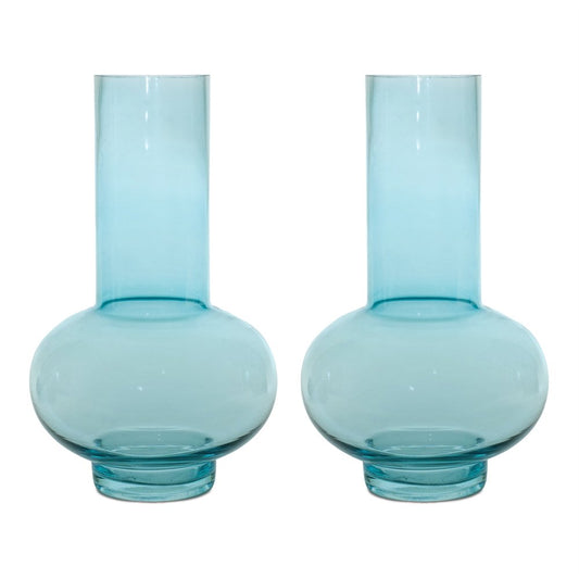 Reduced PriceSet of Two Aqua Glass Round Table Vases