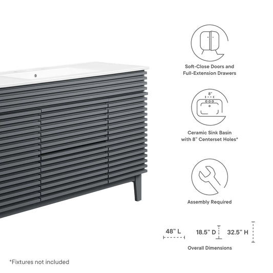Modway Outlet Render 48" Double Sink Bathroom Vanity by Modway Bathroom Furniture Charcoal White - EEI-4441-CHA-WHI