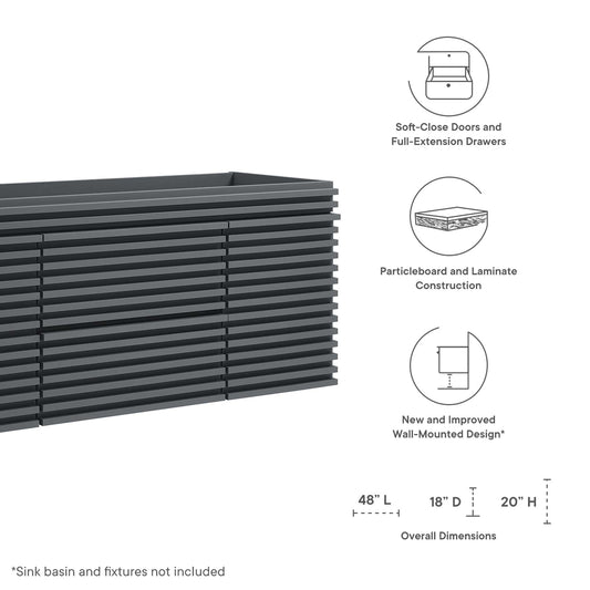 Modway Outlet Render 48" Double Sink Compatible (Not Included) Bathroom Vanity Cabinet by Modway Bathroom Furniture Charcoal - EEI-5867-CHA