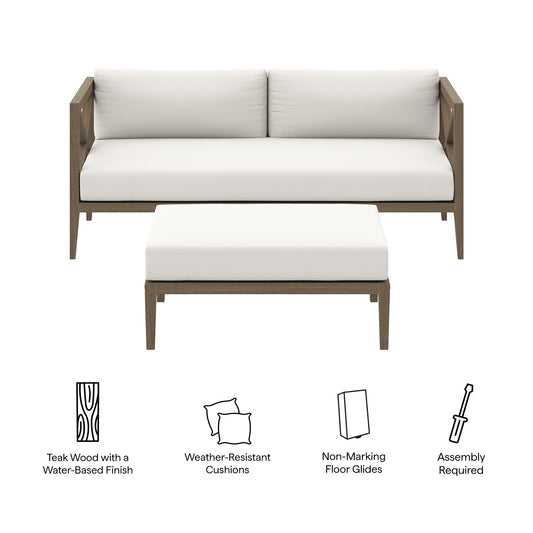 Modway - Northlake Outdoor Patio Teak Wood Loveseat and Ottoman Set by Modway Outdoor Furniture Sofa Sectionals White - EEI-7273-WGR-WHI