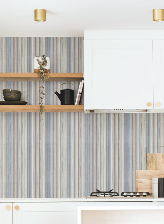 York Wallcoverings Missoni PSWP Striped Sunset Blue Grey Peel and Stick Wallpaper Transitional Stripes Blues Wallpaper - PSW1634RL