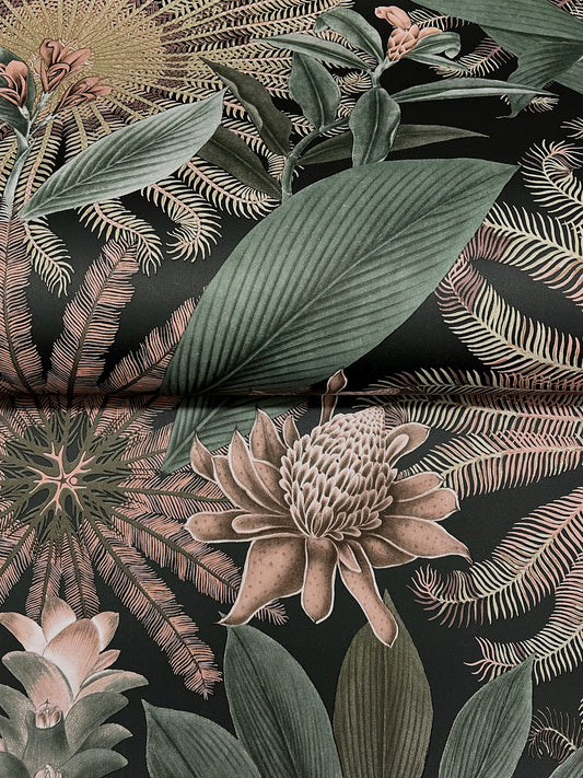 York Wallcoverings Ronald Redding Enchanted Garden Black Tropical Wallpaper Botanical Bohemian Black Wallpaper - VR1531