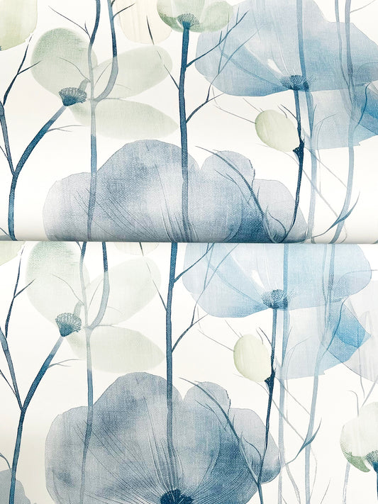 York Wallcoverings Ronald Redding Cotswolds Poppies Blue Floral Wallpaper Botanical Bohemian Blue Wallpaper - VR1535