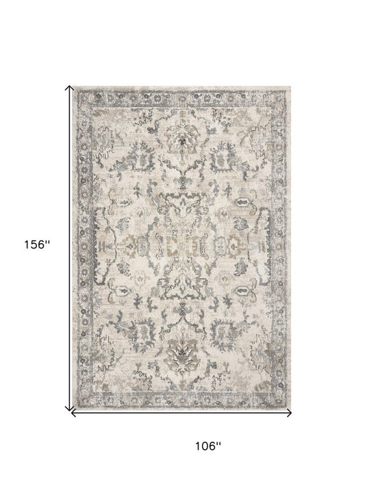 9' X 13' Ivory And Gray Floral Medallion Distressed Area Rug