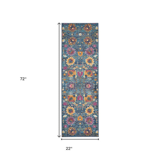 2' X 3' Blue And Orange Floral Distressed Area Rug