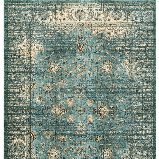 10' X 13' Gray And Green Abstract Distressed Area Rug