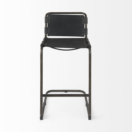 30" Black and Gray Leather and Iron Bar Height Bar Chair