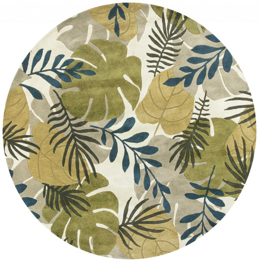 5' X 8' Ivory Green And Blue Wool Botanical Leaves Hand Tufted Area Rug