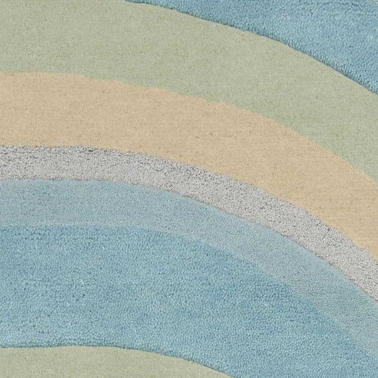 5' X 8' Blue Beige And Green Wool Abstract Hand Tufted Area Rug