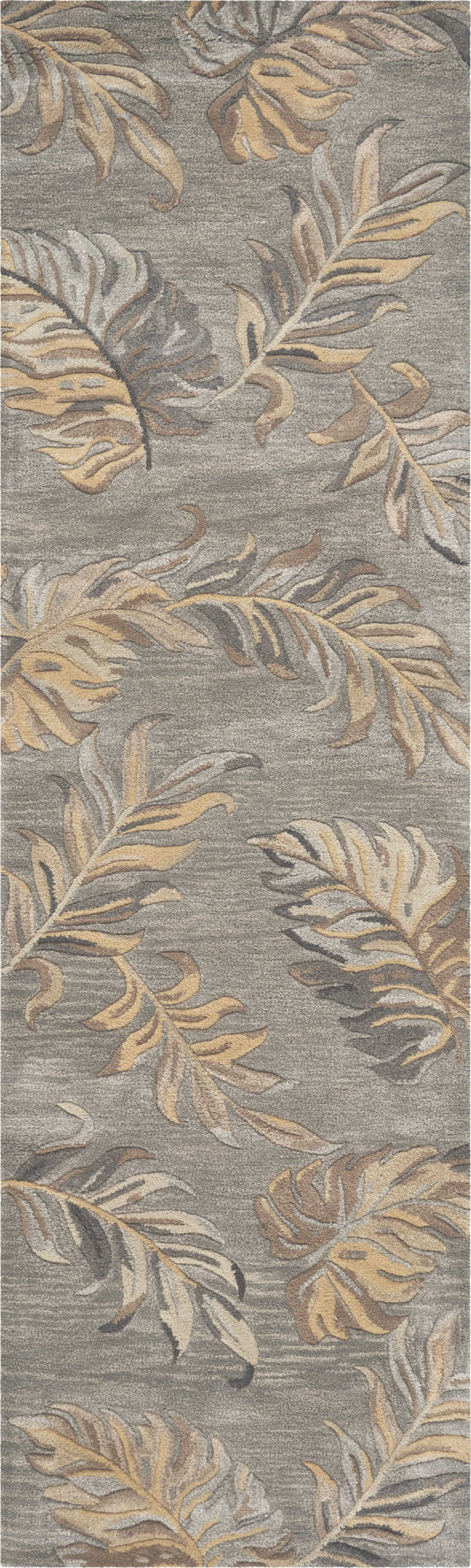 3' X 5' Gray And Taupe Wool Botanical Leaves Hand Tufted Area Rug