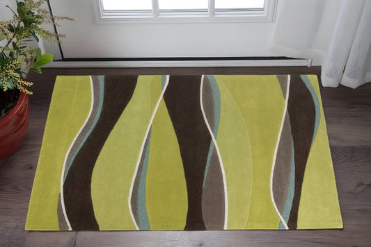 5' X 8' Lime Green Brown And Blue Wool Abstract Hand Tufted Area Rug