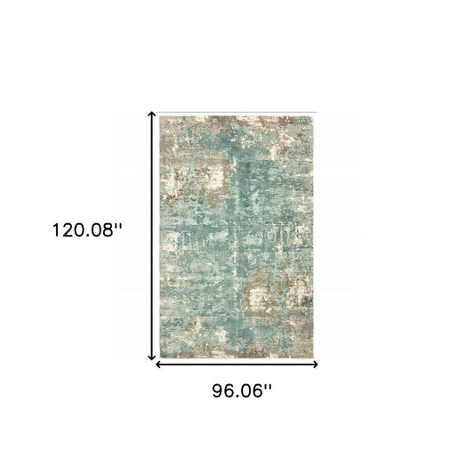 8' X 10' Blue And Gray Abstract Hand Loomed Distressed Area Rug