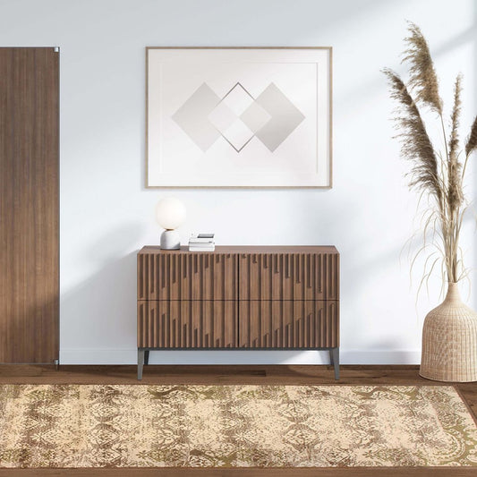 4' X 6' Tan Ivory And Brown Geometric Stain Resistant Area Rug