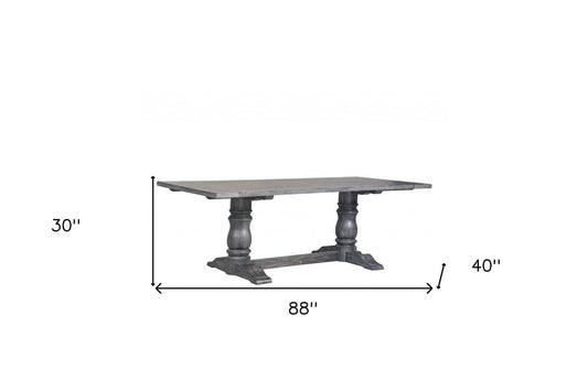 79" Clear And Silver Glass And Stainless Steel Trestle Base Dining Table