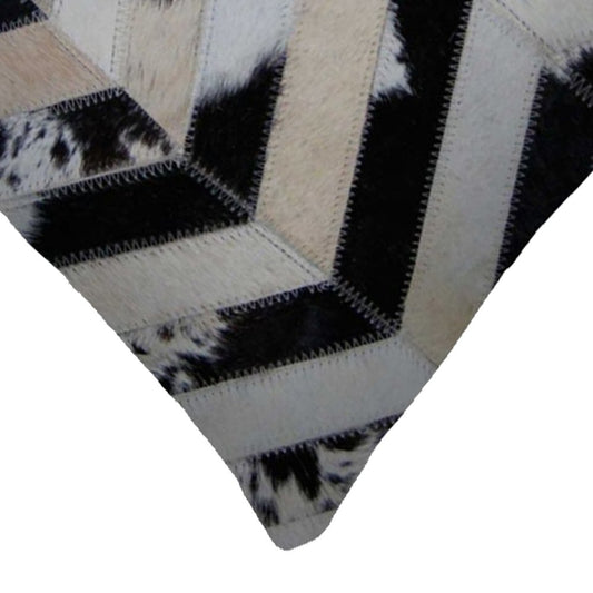 12" X 20" Black Brown and Off White Chevron Cowhide Throw Pillow