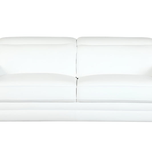 89" White Italian Leather Sofa With Silver Legs