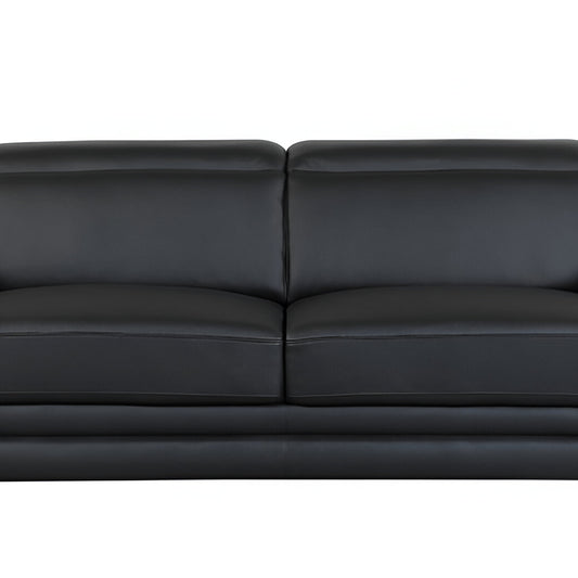 89" Black Italian Leather Sofa With Silver Legs