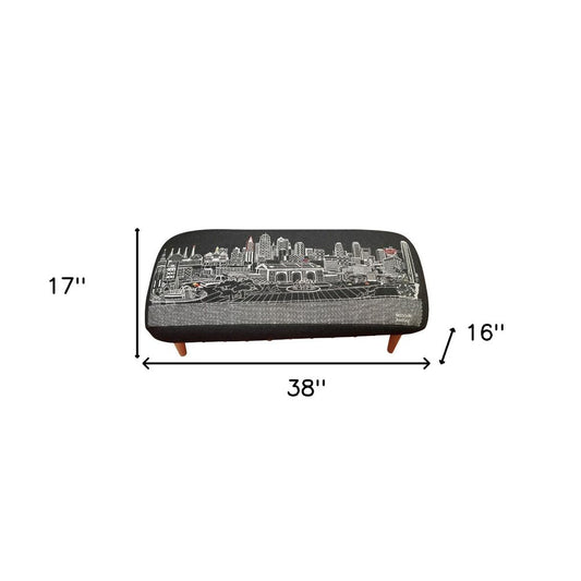 38" Gray Wool and Brown Ottoman