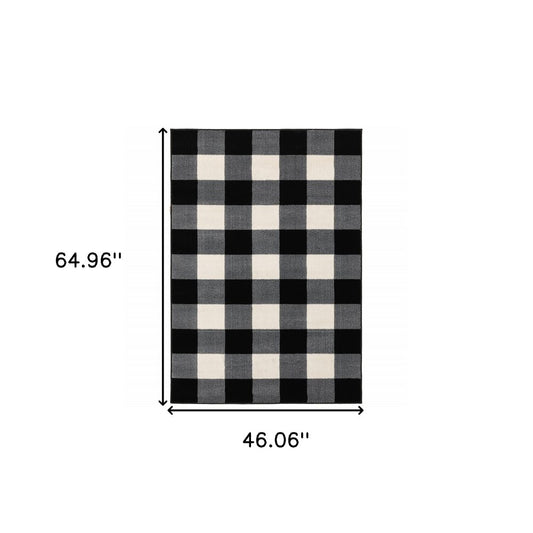 5' X 8' Ivory Black And Gray Abstract Area Rug
