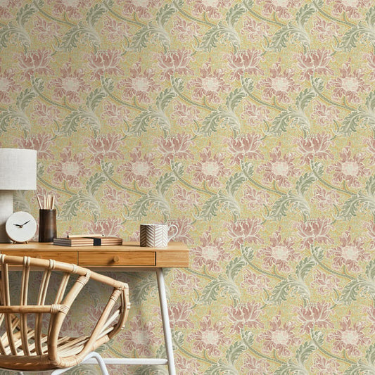 MORRIS & CO Mary Isobel Wallpaper Contemporary, Floral Silk Blue,Pink Gravure Printed Wallpaper - DM3W214731