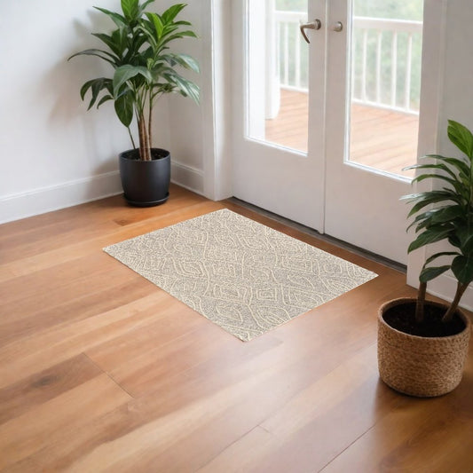 2' X 3' Tan And Ivory Wool Geometric Tufted Handmade Stain Resistant Area Rug