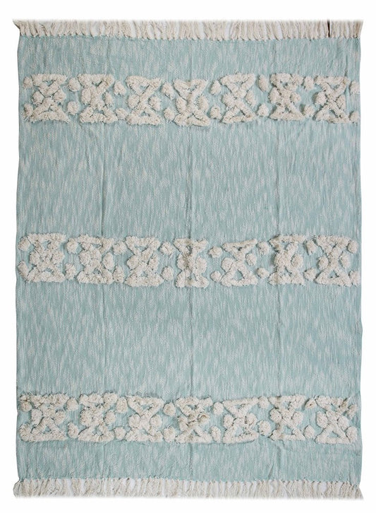 60" X 50" Blue and White Woven Cotton Geometric Throw Blanket with Fringe