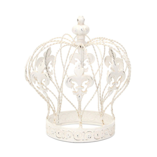 9" White Metal Hand Painted Decorative Crown Tabletop Sculpture