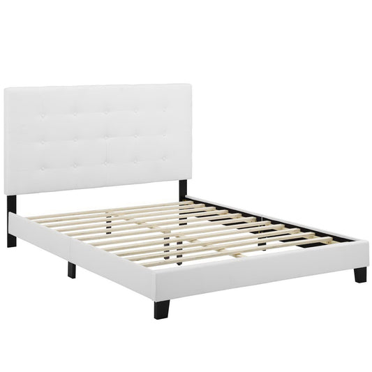 Modway Outlet Tessie Vinyl Queen Bed Frame with Squared Tapered Legs by Modway Bedroom Furniture White - MOD-5898-WHI