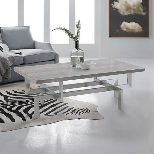 51" Black And Silver Stainless Steel Coffee Table With Shelf