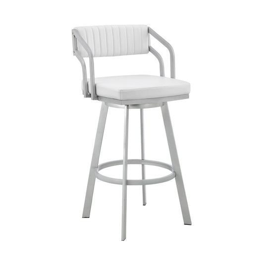 26" White And Silver Iron Swivel Low Back Counter Height Bar Chair