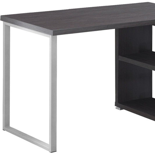 55" Gray and Black L Shape Computer Desk With Three Drawers