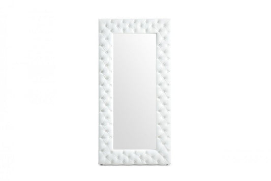 • 80" White Faux Leather Framed Leaning Accent Mirror