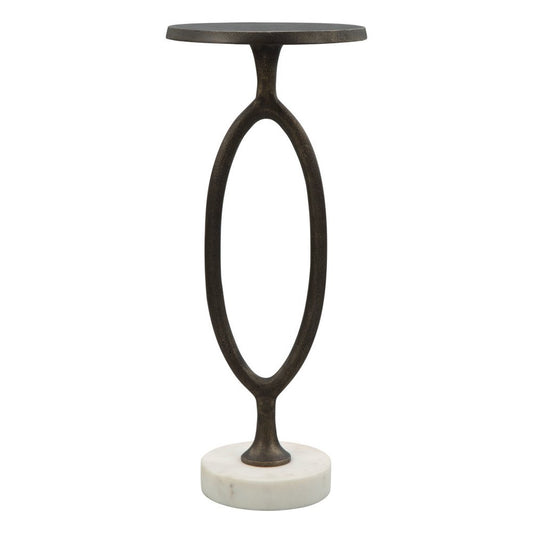 • 25" Bronze And White Aluminum Round Pedestal End Table